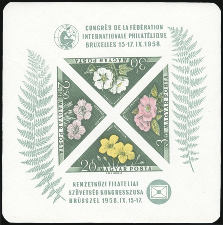 665/1619, B320/C61, Schaubek & Lindner (1 of each) hingeless albums / slipcases with a primarily mint collection of singles, sets & souvenir sheets. Incl mint 693 ($42), 755-61 ($32), 1028-44 ($23), 1170-92 ($29), B338-41 ($40), B344-7 ($29), etc. Also many others in the $1-$23 Cat range. Has defins, commems & nice topicals like planes, architecture, sports, flora & fauna, paintings, ships, etc. F-VF, majority of mint are NH. 2026 Scott $1,758 (1,320 stamps, 21 SS's) |